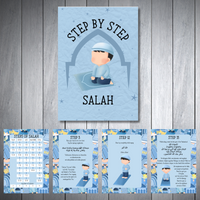 The salaah cards include a step by step guide on how to pray salaah. The cards mirror what they learn in early mosque years making them ideal to help your child on their learning journey.