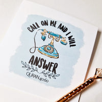 Call on me and I will answer greetings card printed on 6by6 inch 300gsm premium linen paper. Blank inside for you to write your own message! Also available as an A5 or A4 print