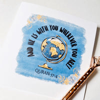 And he is with you wherever you go greetings card printed on 6by6 inch 300gsm premium linen paper. Blank inside for you to write your own message! Also available as an A5 or A4 print