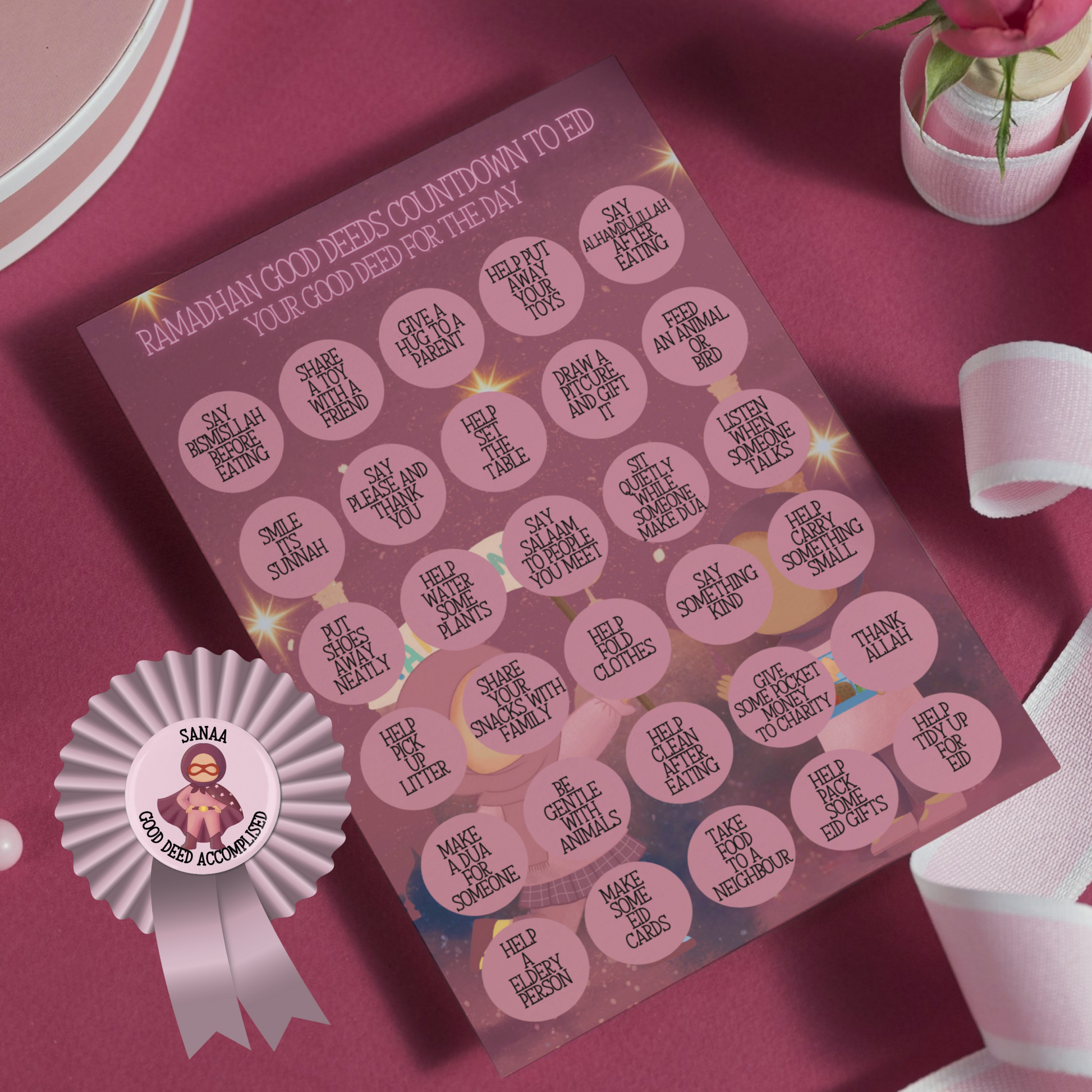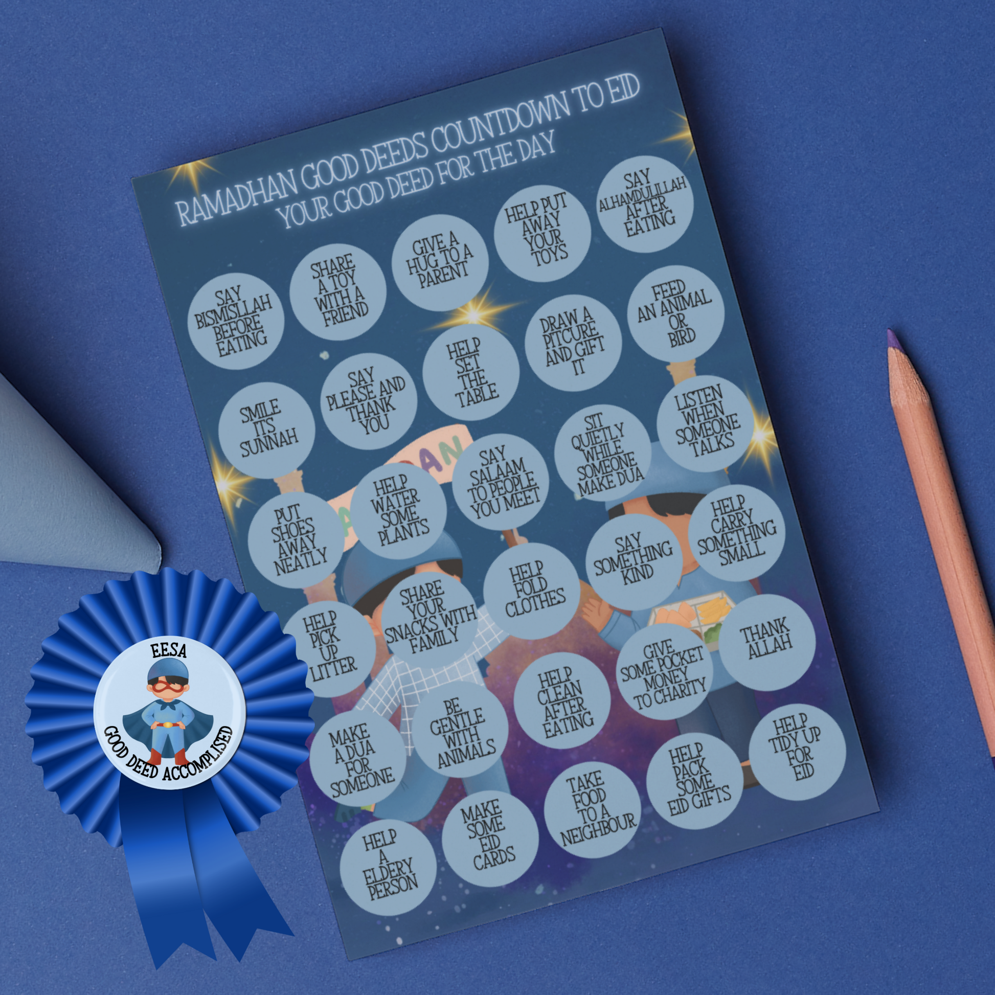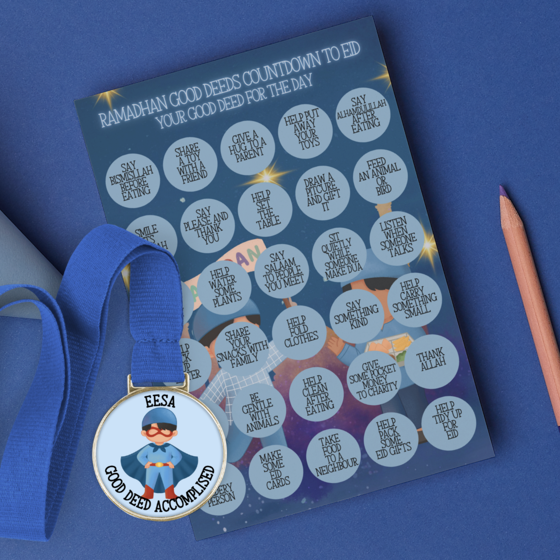 Help your little ones celebrate Ramadan with these delightful deed trackers! Watch them light up as they complete good actions and earn exciting rewards—choose from a shiny medal, rosette, or badge, plus a special certificate to commemorate their achievements. Perfect for keeping young hearts engaged and motivated throughout the month.
