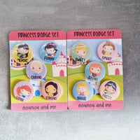 Choose between 2 sets of princesses! Each come with 5 x 25mm badges! To wear on clothing or add to your bags. Perfect little gifts for kids!