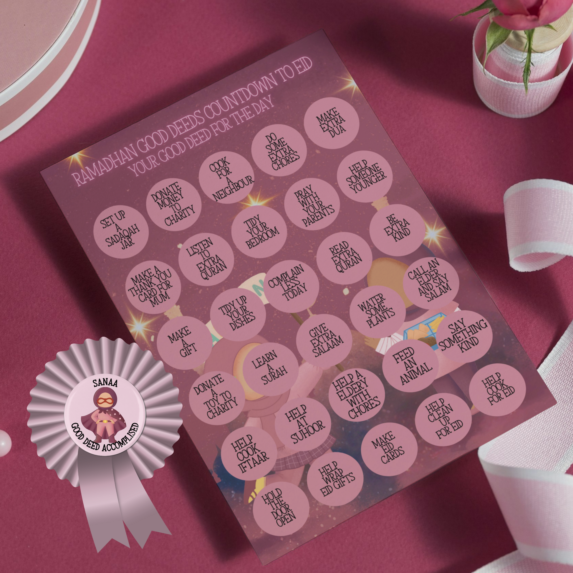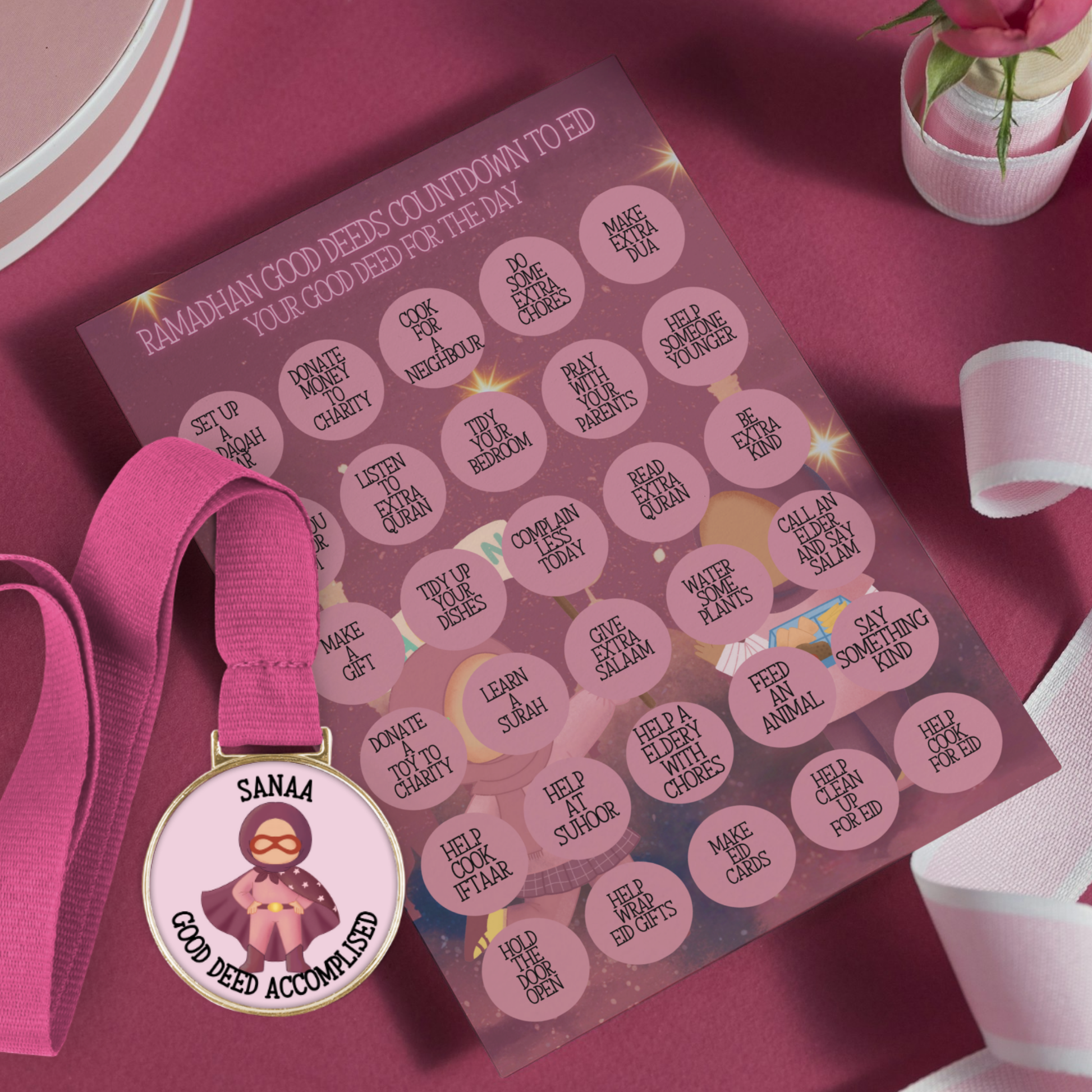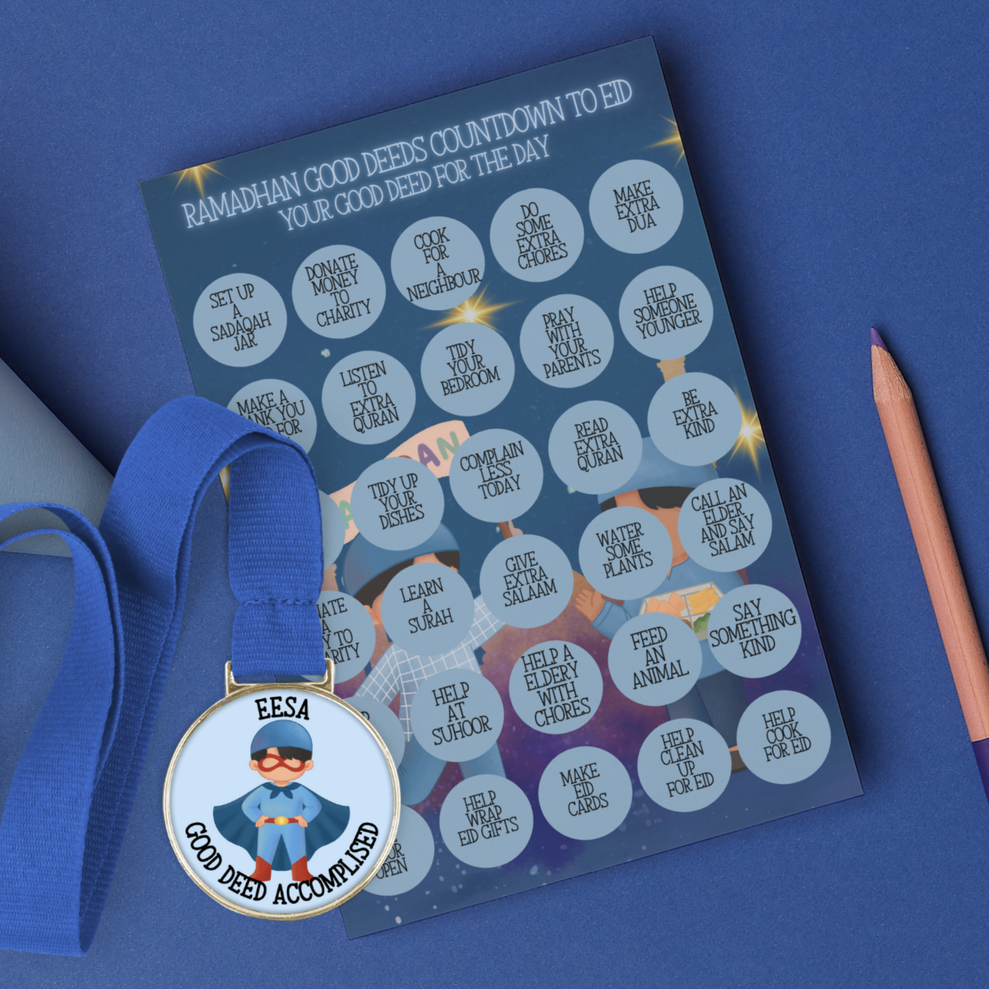 Help your little ones celebrate Ramadan with these delightful deed trackers! Watch them light up as they complete good actions and earn exciting rewards—choose from a shiny medal, rosette, or badge, plus a special certificate to commemorate their achievements. Perfect for keeping young hearts engaged and motivated throughout the month.